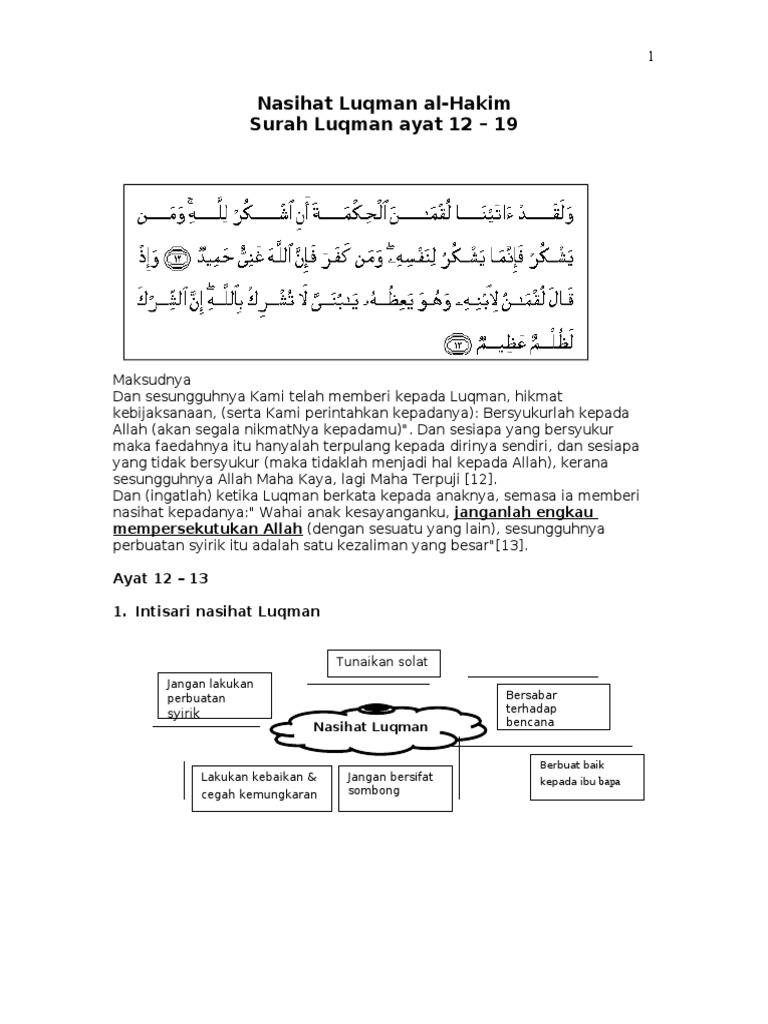 Luqman al-Hakim adalah surah ke-31 dalam Alquran. 1 dari 4 halaman Pokok Kandungan Surat Luqman.